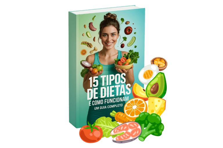 ✅ Conheça 15 dietas diferentes (low carb, mediterrânea, jejum intermitente e muitas outras) explicadas de forma simples e direta.
